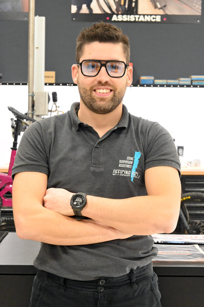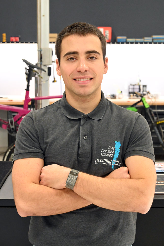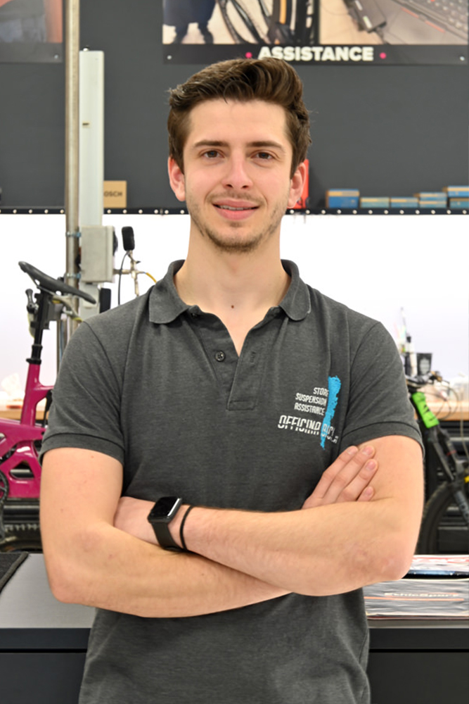 Hai un problema alla bici? Hai fretta? Dietro al bancone troverai Andrea, che in pochi minuti risolverà il problema o ne troverà la soluzione. Dopo il primo anno sotto le grinfie di Stefano che gli ha mostrato i trucchi del mestiere ora è il pilastro portante dell’officina Inoltre, l'esperienza maturata in molti anni di competizioni internazionali garantisce precisione e velocità di un livello superiore.